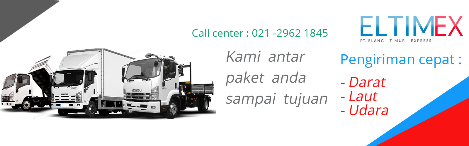 ELTIMEX atau PT elang timur express adalah perusahaan swasta nasional yang bergerak di bidang jasa logistik & pengiriman barang. Dengan pengalaman lebih dari 10 tahun dan mempunyai perwakilan di beberapa kota besar, maka kami siap untuk mendistribusikan dan mengantarkan paket atau barang ke .....